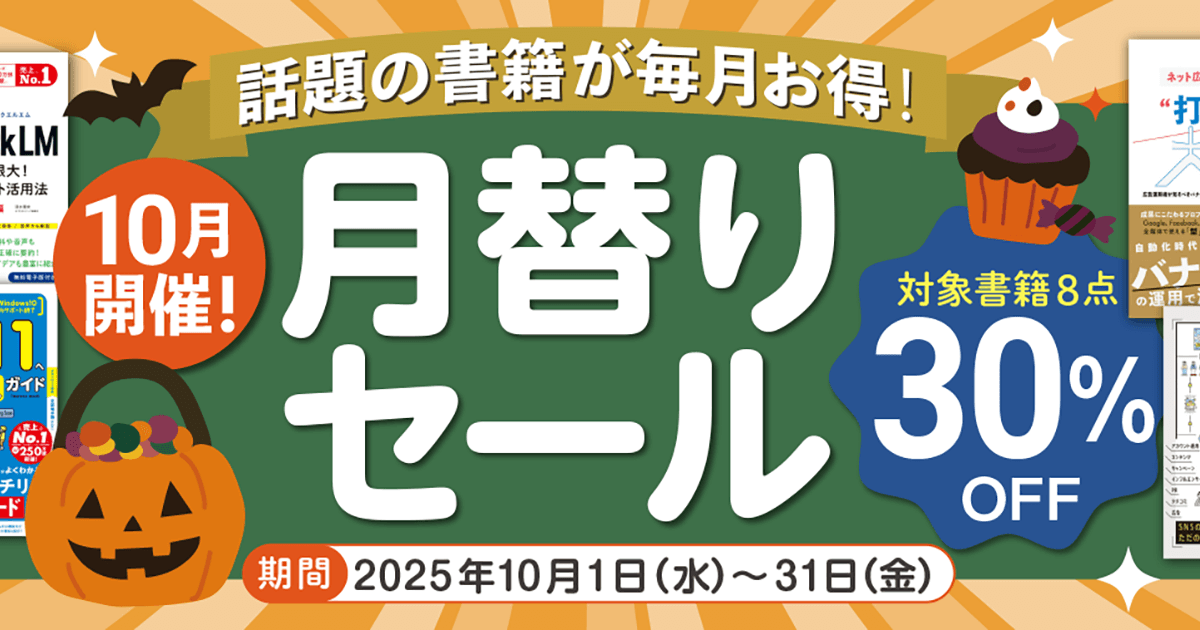 インプレスブックスでは、2025年10月1日(水)から10月31日(金)にかけて「話題の書籍が毎月お得! 月替りセール」を開催中です。