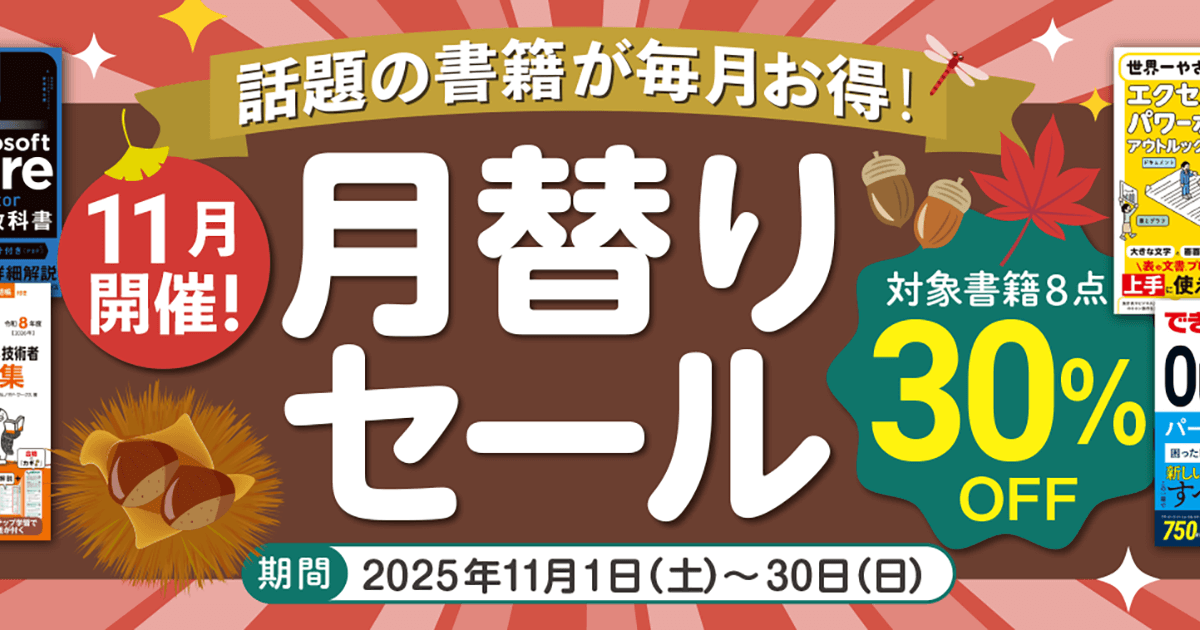 インプレスブックスでは、2025年11月1日(土)から11月30日(日)にかけて「話題の書籍が毎月お得! 月替りセール」を開催中です。