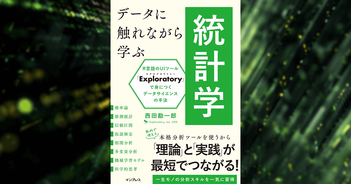 株式会社インプレスは、世界中のデータサイエンティストが利用する「R言語」をベースに開発されたUIツール「Exploratory」(エクスプロラトリー)を用いて、統計学やデータ分析の手法を学べる書籍『データに触れながら学ぶ統計学 R言語のUIツール「Exploratory」で身につくデータサイエンスの手法』を2025年12月3日(水)に発売いたします。